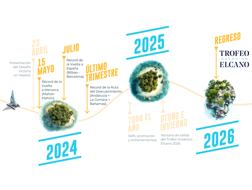 Y es así como, inspirados en la mayor aventura de la historia, nace DESAFÍO VICTORIA; un proyecto mayúsculo en el que recuperamos un barco legendario para revivir y disputar el mayor desafío oceánico de todos los tiempos: dar la vuelta al mundo hacia el oeste.