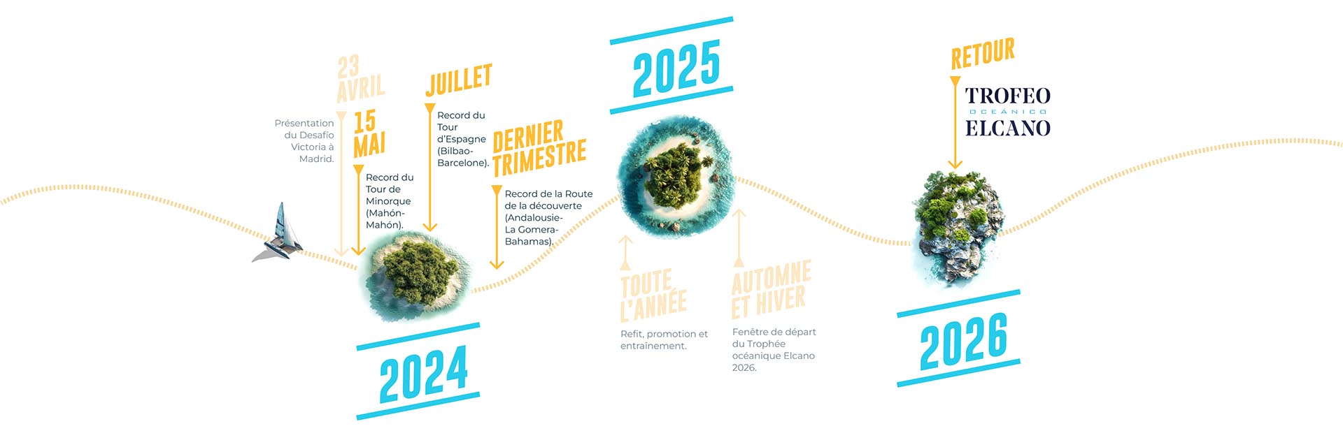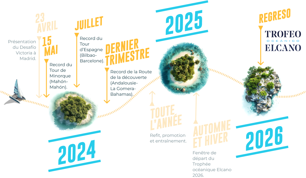 Le 6 septembre 2022, coïncidant avec la date exacte du Vème Centenaire de la 1ère Course autour du Monde, nous créerons le Trophée Océanique Elcano : un grand prix international qui reconnaîtra le défi de la circumnavigation à la voile neutre en CO2, sur les traces de Magellan et d’Elcano.